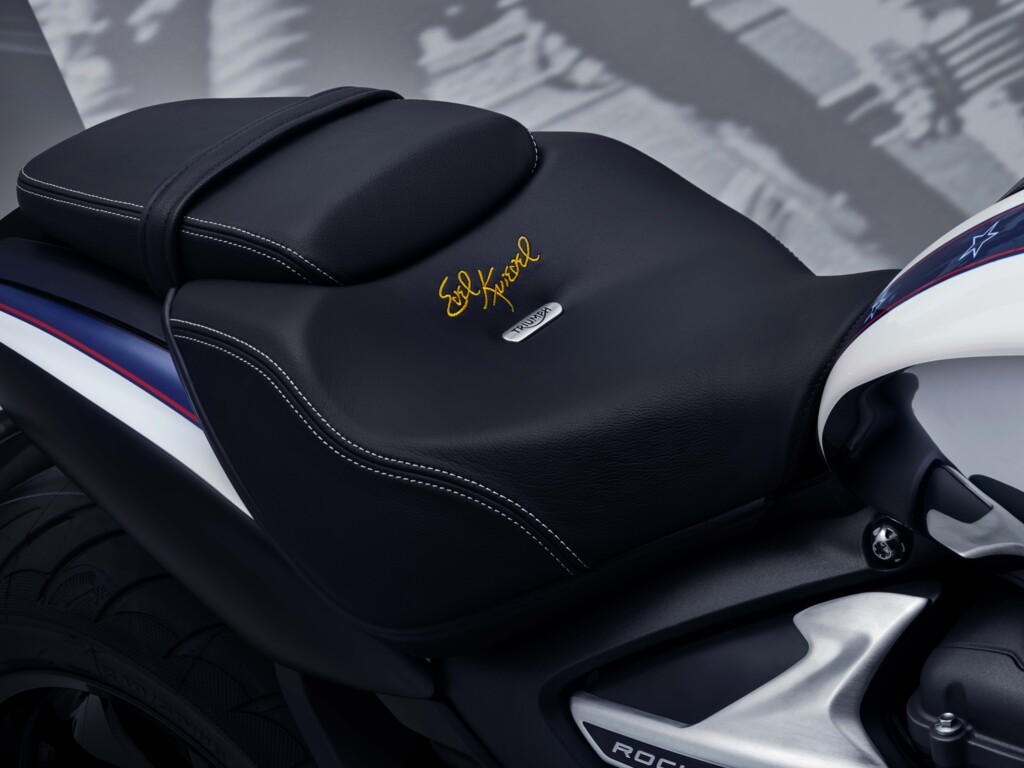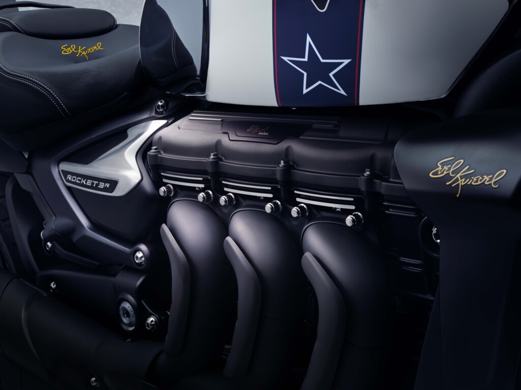 Rocket 3 2,5 litru trīscilindru motors ir matētā melnā krāsā, un tam ir numurēts melnas un zelta krāsas salikuma sadales vārpstas vāks. Ādas sēdekļus rotā zeltā izšūts Evel Knievel logotips, un instrumentiem ir īpaša sākuma animācija. Katrs Triumph Rocket 3 R vai GT Evel Knievel LE pircējs saņem ekskluzīvu kolekcionāra grāmatu, kas stāsta par kaskadieri un viņa Triumph motocikliem.