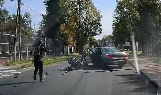 Komentārā teikts, ka pēc brīža motociklists piecēlies, ķivere bijusi bojāta, no deguna asinis. Lasīt vairāk