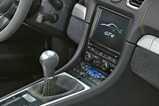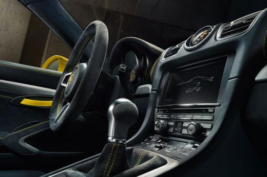 Salonā iebūvēti sporta sēdekļi ar stingru atbalstu (sacīkšu „šāles” par piemaksu) un alkantara apdari, kas grezno arī stūri, priekšējo paneli un ātrumpārslēga kulisi. Salīdzinot ar standarta modeli, "GT4" piekare ir par 30 mm zemāka, bet bremzes gandrīz pilnībā sastāv no 911 GT3 komponentiem.
