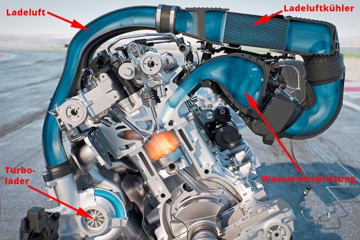 Ūdens tiek iesmidzināts ieplūdes kolektorā caur trīs sprauslām, uzlabojot degvielas sadegšanas procesu un samazinot temperatūru. "M4" bagāžniekā atrodas pieclitrīgs ūdens rezervuārs no kurienes sūknis ar 10 bāru spiedienu to piegādā dzinējam, vadoties no pieprasījuma, ko nosaka automobiļa elektronika.