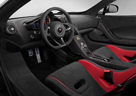 Jaunajam superauto ir oriģinālas konstrukcijas aerodinamiskā aprīkojuma komplekts, kas nodrošina par 40% lielāku piespiedējspēku salīdzinājumā ar 650S, jauna un par 1,1 kg vieglāka titāna izplūdes sistēma, kā arī oglekļa šķiedras antispārns, kas ir par 50% lielāks nekā 650S. Salona apdarei izmantota alkantara un alumīnijs, bet sporta sēdekļi aizgūti no "McLaren" flagmaņa "P1." Pircēju izvēlei sagatavotas piecas virsbūves krāsas: "Silica White," "Delta Red," "Napier Green," "Chicane Grey" un "McLaren Orange."