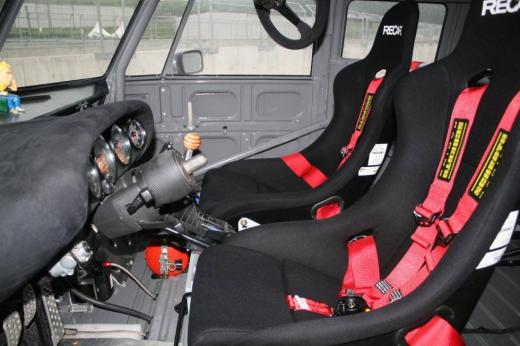 Svara samazināšanas nolūkā salonā nav nekāda apšuvuma vai skaņas izolācijas materiāla – vien mērinstrumenti, sporta sēdekļi un drošības karkass.