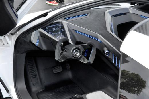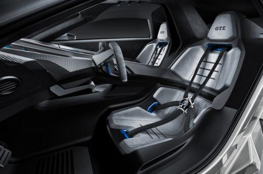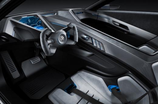 Koncepta durvis atveras uz augšu, atklājot futūristiska izskata kokpitu, kurā iebūvēti ar platu viduskonsoli atdalīti un piecpunktu drošības jostām apgādāti sporta sēdekļi. F1 bolīdiem līdzīgajai stūrei priekšā sarindojušies trīs krāsaini displeji, kurus pilots izmanto, lai pārliecinātos par darba režīmu un sistēmu darbību, kontrolētu jaudas un atlikušās enerģijas daudzumu, iegūtu informāciju par automašīnas ātrumu un nobraukto apļu laikiem.