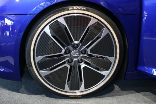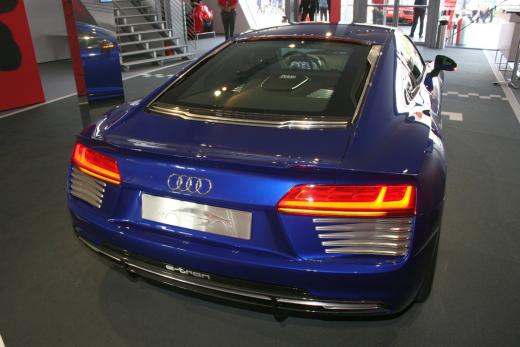 "e-tron" modelim ir oriģināla dizaina priekšpuses un aizmugures noformējums, tikai šim modelim izstrādāti noslēgti riteņu diski, karbona gaisa pievadi ar oranžā ierāmējumā. "R8 e-tron" attīsta 462 ZS (920 Nm), 100 km/h sasniedz 3,9 sekundēs un var turpināt paātrinājumu līdz 250 km/h, kad nostrādā maksimālā ātruma elektroniskas ierobežotājs. Elektriskās suprmašīnas cena pagaidām nav zināma.