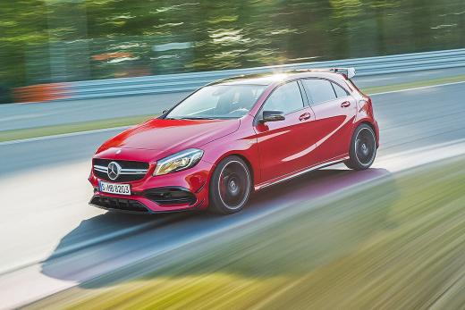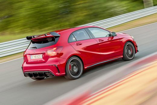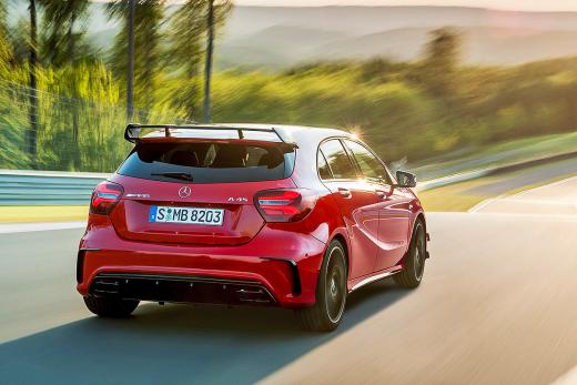 A-klases visjaudīgākā modifikācija "A45 AMG" aprīkota ar 2,0 litru benzīna turbo motoru, kas attīsta 381 Zs un 475 Nm. Komplektā ar šādu motoru A-klases hečbeks līdz simtam paātrinās 4,2 sekundēs (agrāk 4,6), bet maksimālais ātrums ir 250 km/h. Izvēloties par papildmaksu pasūtāmo "AMG-Drivers-Package" piedāvājumu, maksimālā ātruma galējo robežu iespējams pārbīdīt līdz 270 km/h.