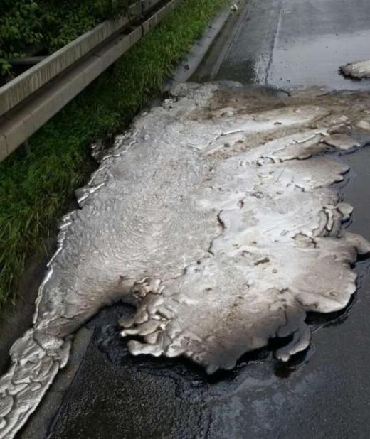 Policijas informācija liecina, ka mašīna, kas vilkusi puspiekabi ar trīs šķidrā metāla tvertnēm, nezināmu apstākļu dēļ sākusi šūpoties un apgāzusies. Viena no tvertnēm nav izturējusi triecienu un vairākus simtus grādu karstais alumīnijs izplūdis uz braucamās daļas, acumirklī aizdedzinot asfaltu.