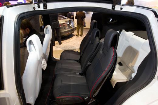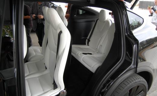 Model X var pasūtīt sešvietīgā vai septiņvietigā versijā. Trešās rindas sēdekļus var nolocīt, izveidojot līdzenu grīdu, taču arī tad, kad tie ir pacelti, vieta bagāžai paliek, turklāt to var novietot arī zem priekšējā pārsega, kur automobiļiem ar iekšdedzes dzinēju ir motortelpa. Elektriskais krosovers komplektēts ar vislielāko panorāmas jumtu, kāds pieejams sērijveida automobiļiem un uz augšu paceļamām Falcon Wings aizmugures durvīm, kas atveras automātiski un aprīkotas ar sensoru, kas neļaus tām atsisties, piemēram, pret garāžas griestiem.