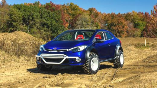Dienvidkorejas kompānija "Kia" SEMA motoršovam sagatavojusi neparastu projektu – apvidus auto "Mud Bogger" uz kupejas "Forte Koup" bāzes.