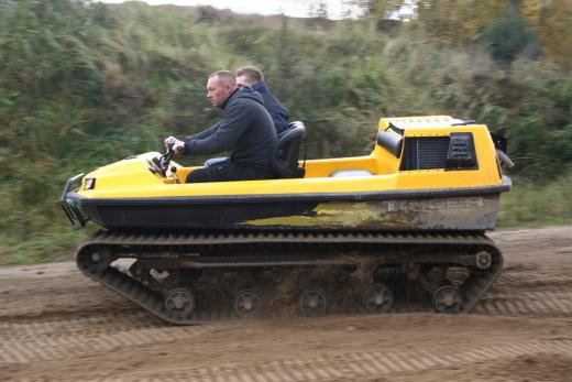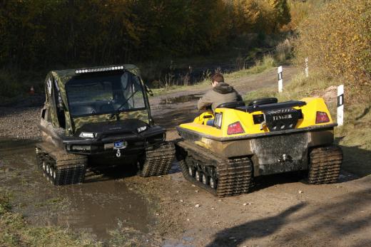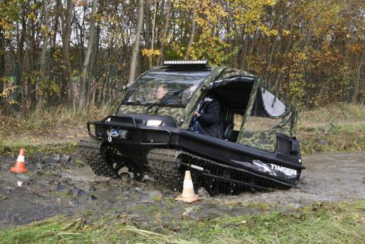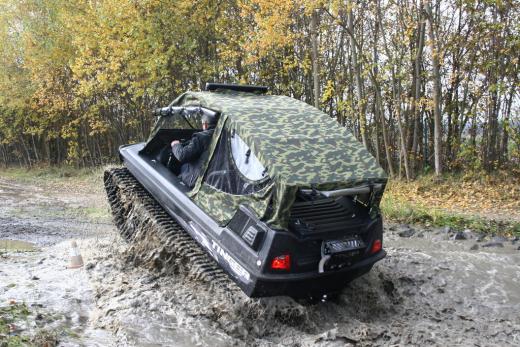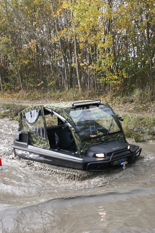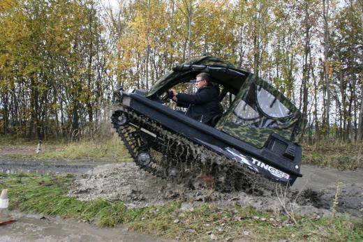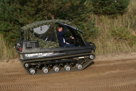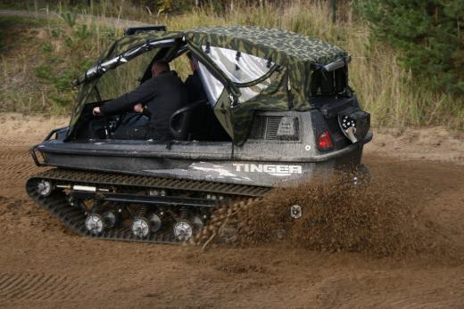 "Tinger Track 500" ir universāls transportlīdzeklis, kas apvieno „piecus vienā” – to var izmantot kā kvadrociklu, nelielu traktoru, Sumpf-Buggy (purva vai dubļu bagiju), sniega mobili vai pat laivu, ko pieļauj kāpurķēžu piedziņa un hermētiskā vannas tipa virsbūve ar dubulto korpusu.