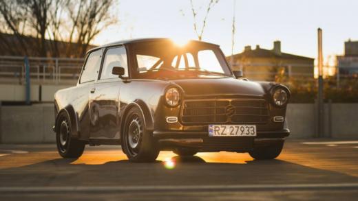 Ja kāds nezina, kas ir "Trabant", tad atgādināsim, ka tas ir savulaik Vācijas Demokrātiskajā Republikā ražots, 3,6 m garš mazauto, kas lielākoties tika aprīkots ar divcilindru 26 ZS motoru.