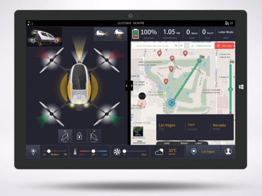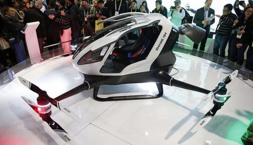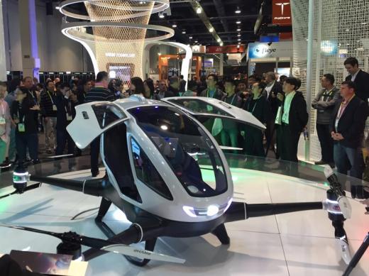 Lasvegasas elektronikas sasniegumu izstādē CES-2016 tiek demonstrēts Ķīnas kompānijas EHang PFV (Personal Flying Vehicle) – lidaparāts, kas paredzēts cilvēku transportēšanai.