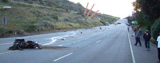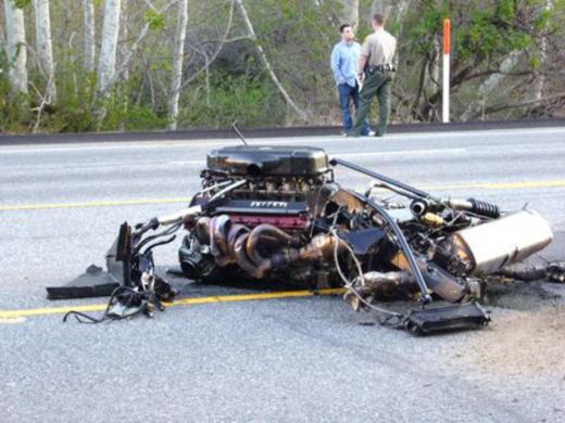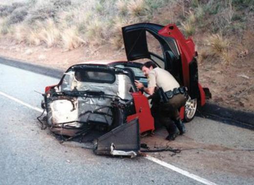 Divus gadus vēlāk automašīna iekļuva šausminošā avārijā uz "Pacific Coast Highway" autoceļa, kad traucoties ar ātrumu 260 km/h vadītājs zaudēja kontroli pār savu spēkratu un "Ferrari" ar visu sparu triecās pret sakaru komunikāciju stabu. Automašīna sadalījās divās daļās, sīkākas detaļas tika izkaisītas vairāku simtu metru rādiusā, bet vadītājs… no notikuma vietas aizbēga. Toreiz mediji rakstīja, ka pie stūres atradies 44 gadus vecais Stefans Eriksons, kompānijas "Gizmondo" direktors, kurš esot saķēries nelegālās sacīkstēs ar "Mercedes SLR McLaren".
