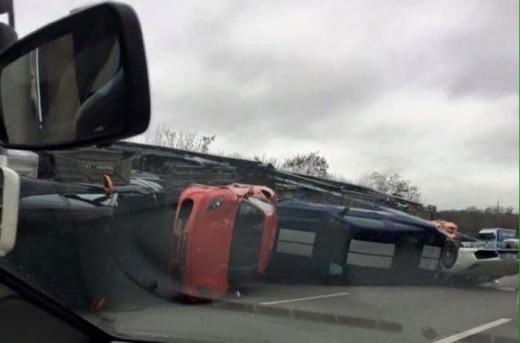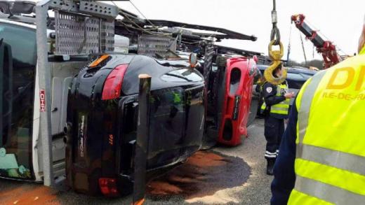 Aizvadītās nedēļas nogalē Parīzes tuvumā avarējis autovedējs, kas transportējis deviņas dārgas sporta automašīnas.