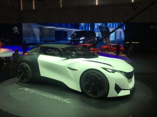 Līdztekus „Peugeot” prezentē konceptauto „Fractal”. Šajā futūriskā dizaina elektromobilī tiek piedāvāta jauna „Peugeot i-Cockpit” vadītāja vietas interpretācija, kas vēl intuitīvākas vadīšanas nodrošināšanai koncentrējas uz skaņu. Līdztekus acīm un pirkstiem tagad kaut kas tiek piedāvāts arī ausīm. Brazīlijas dizainera Amona Tobina un „Peugeot” speciālistu sadarbības rezultātā tapusi 9.1.2 akustiskā sistēma, kas kombinē 9.1 hi-fi sistēmu un katra sēdekļa muguras balstā integrēti zemo frekvenču skaļruņi, kas ļauj iegūt dinamisku skaņas pārvietošanos telpā. Tās skanējums mainās atbilstoši tam, vai automobilis paātrinās, palēninās vai pārvietojas ar konstantu ātrumu. Skaņas sistēma brīdina arī gājējus un velosipēdus – tādēļ šis automobilis prot pieklājīgi uzvesties pilsētas ielās.