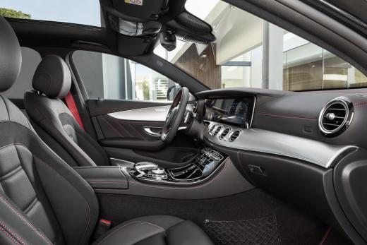 No ārpuses AMG E43 4Matic atšķiras ar jaunu priekšējo buferi, kuram ir trīs lielas gaisa pieplūdes atveres, hromā ietvertu un sīkiem hroma „dimantiņiem” greznotu radiatora režģi, 19 collu riteņu diskiem piecspieķu dizainā un nelielu virsbūves krāsas spoilerīti uz bagāžnieka vāka. Komplektā arī hromēts bagāžnieka vāka dekors un četru cauruļu izplūdes sistēma ar trapecveida izvadiem. Salonā izceļas sēdekļi ar sarkanu diegu nošuvumu, sarkanas krāsas drošības jostas un sporta stūre ar saplacinātu apakšmalu.