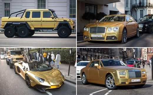 Miljardiera autoparku Londonas vizītes laikā pārstāv 6x6 Mercedes G63 apvidus auto (EUR 480 000), Rols-Royce Phantom kupeja (EUR 455 000), Lamborghini Aventador SuperVeloce (EUR 455 000) un Mansory tūninga kompānijā uzlabotais Bentley Flying Spur (EUR 285 000).