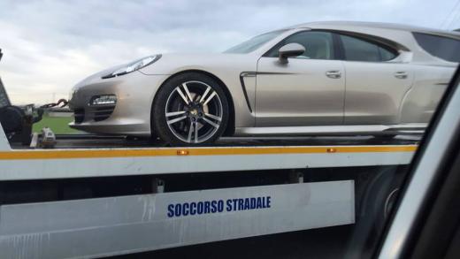 Spriežot pēc evakuatora, šis ir bildēts Italijā. Nu ja šiem jau bija un patika "četras durvis" (Quattroporte) šim nolūkam, tad gan jau arī Panamerai būs noiets ;)