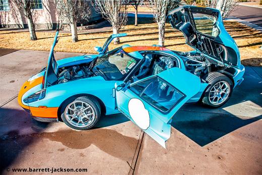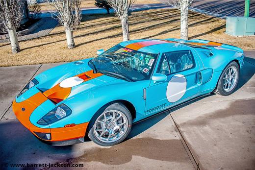Barrett-Jackson izsoļu nams izlicis pārdošanā desmit gadu vecu Ford GT Heritage Edition sporta auto, kas ir viens no tikai 343 savulaik (2004.-2006.g.) uzbūvētajiem.