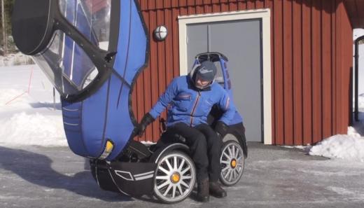 Zviedrs Mikaels Kjelmans nodemonstrējis sava velomobiļa prototipu, ko veiksmes gadījumā cer attīstīt par ražošanas projektu.