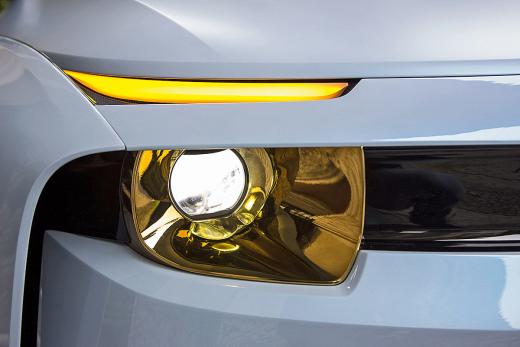 Strādājot pie projekta, dizaineri apzināti miksējuši retro elementus ar mūsdienu tehnoloģijām. Piemēram, automašīnas lukturi – tie darbojas LED tehnikā, taču pēc formas ar diviem galvenajiem starmešiem un atdalītajiem virzienrādītājiem priekšā, kā arī taisnstūrveida bloklukturiem aizmugurē, atgādina 60.-70.gadu modeli. Interesanta detaļa: galvenos starmešus ietver zeltīti reflektori, bet aizmugures optiku nosedz melni stikli, sarkanajiem diožu elementiem ļaujot izgaismoties tikai tad, kad tie ieslēgti.