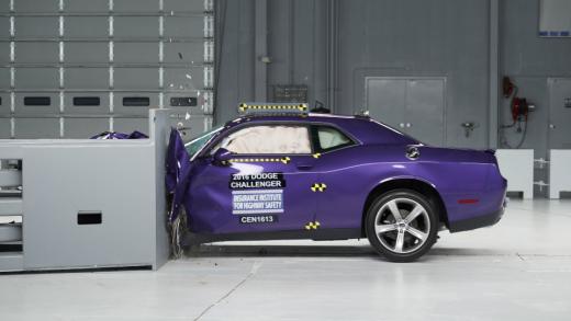 Atsitoties pret 1,5 m augstu šķērsli ar ātrumu 65 km/h "Dodge Challenger" deformējās tik ļoti, ka kupejas kreisais priekšējais ritenis tika iestumts kabīnē un spēcīgi traumēja vadītāja kājas. Manekena pēdu iespieda tik stipri, ka testētājiem nācās atskrūvēt tā kāju. Citās disciplīnās "Challenger" saņēma atzīmi “apmierinoši” un “labi” (augstākā atzīme atsevišķā disciplīnā)