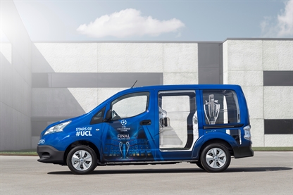 Nedēļas nogalē gan e-NV200 furgons, gan unikāls Nissan LEAF transportēs UEFA Čempionu līgas trofeju.