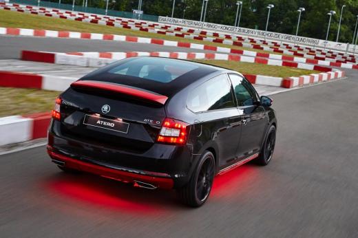 Automobilim ir pārveidots motora pārsegs ar slīpiem gaisa pievades kanāliem, kuros iebūvētas LED gaismas. Sarkanas krāsas diožu izgaismojums ir arī virsbūves apakšai un koncepta durvīm, sasaucoties ar tādas pašas krāsas akcentiem "Atero" eksterjerā un interjerā. Uzstādīta arī sportiska skanējuma izplūdes sistēma no "Škoda Superb vRS" un 1800 vatu stereo sistēma spēkrata bagāžas nodalījumā.