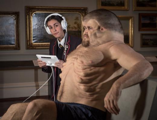 Patlaban monstram līdzīgais manekens, kas nebaidās no avārijām, aplūkojams Viktorijas valsts bibliotēkā.