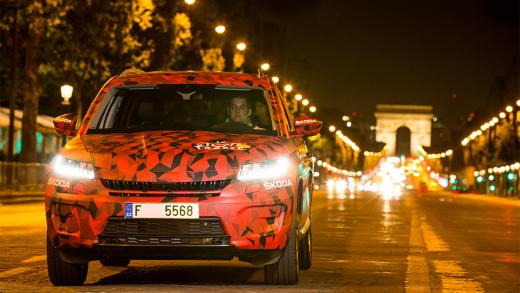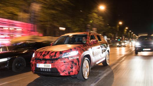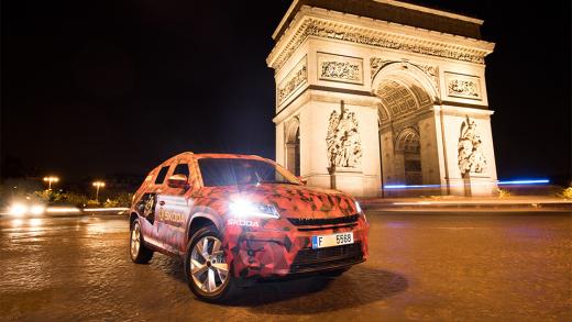 Attēlos redzamais „Kodiaq” tika izmantots „Tour de France” riteņbraukšanas pēdējā etapa pavadīšanai. Tajos čehu jaunums vēl paslēpts zem maskas, taču drīz tā tiks noņemta un 1.septembrī Berlīnē, kā arī 1.oktobrī Parīzē, kad Francijas galvaspilsētā durvis vērs šī rudens svarīgākais autobūves jaunumiem veltītais pasākums, "Škoda" lielais krosovers apmeklētāju priekšā stāsies visā krāšņumā.