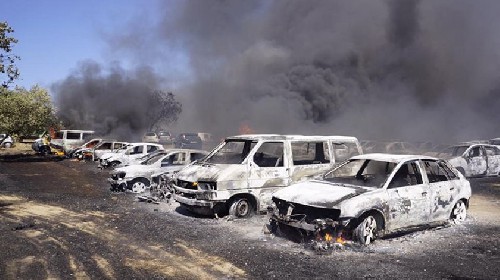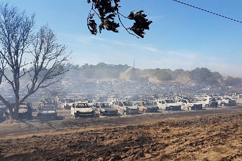Ugunsgrēks izcēlies aizdegoties vienam no spēkratiem un strauji izplatījies lielā karstuma un transportlīdzekļu blīvā novietojuma dēļ.
