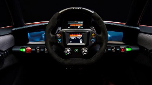 Vadības slēdži uz stūres kontrolē BladeGlider sistēmas ar moderna displeja starpniecību un attēlo braukšanas ātrumu, akumulatora uzlādes līmeni, reģenerācijas režīmu un griezes momenta līkni. Vidējā displeja abās pusēs ir divi ekrāni, kuros redzams attēls no divām atpakaļskata kamerām aiz priekšējiem riteņiem. Šis dubultais ekrāns ir sānu atpakaļskata spoguļu alternatīva un uzlabo BladeGlider aerodinamisko efektivitāti. Autovadītājs sēž priekšā, centrālajā daļā, bet nedaudz aiz viņa – divi pasažieri, kuriem ir pieejama papildu brīva vieta kājām. Automobiļa salona vienlaidu vējstikls visiem pasažieriem nodrošina panorāmas redzamību visapkārt.