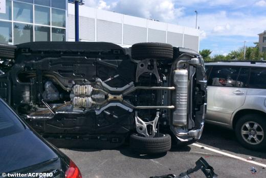 ASV kāda sieviete uzstādījusi savdabīgu “pasaules rekordu,” noliekot testa automobili uz sāniem un sadauzot vēl četrus citus spēkratus.