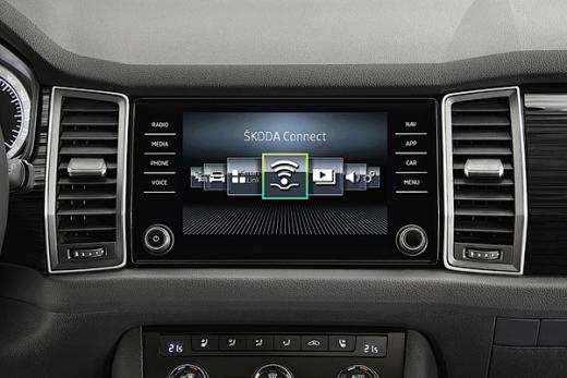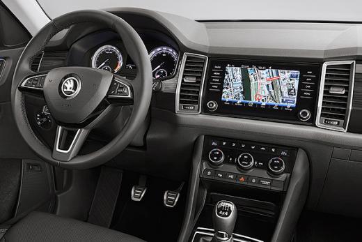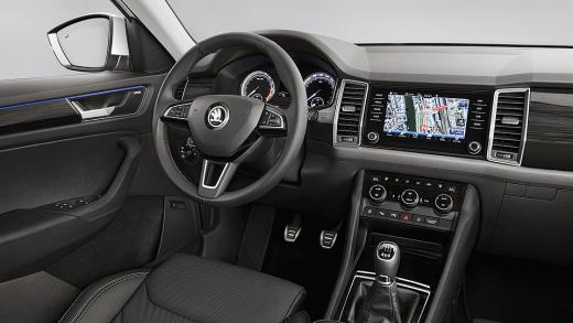 "Kodiaq" aprīkojumā būs multimediju sistēma ar skārienjutīgu vadību, "Google" navigāciju, atsevišķa klimatkontrole aizmugures pasažieriem, bagāžnieka vāks ar elektropievadu un bezkontakta atvēršanas funkciju, "Head-up" displejs, kā pirmajam no "Škoda" modeļiem. Būs arī durvīs noglabāti lietussargi un speciāls „miega komplekts” aizmugures pasažieriem.