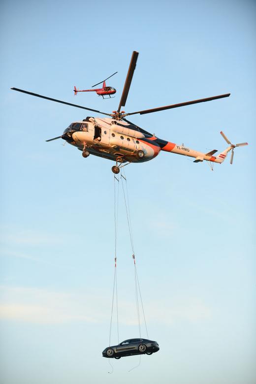 Ekskluzīva Porsche Panamera debija Baltijas un Baltkrievijas reģionā — jaunais modelis pirmo reizi Eiropā nogādāts ar helihopteru.