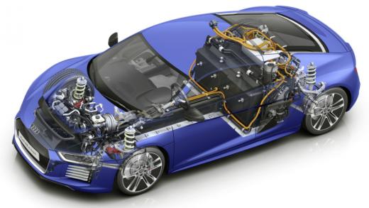 "R8 e-tron" ir komplektēts ar diviem elektromotoriem, kuru kopējā jauda ir 462 ZS. 100 km/h "Audi" varenauto sasniedz 3,9 sekundēs, bet ar pilnībā uzlādētiem akumulatoriem var nobraukt 450 km.