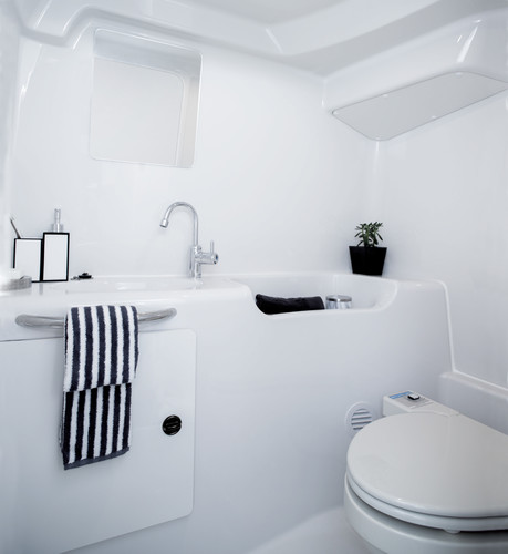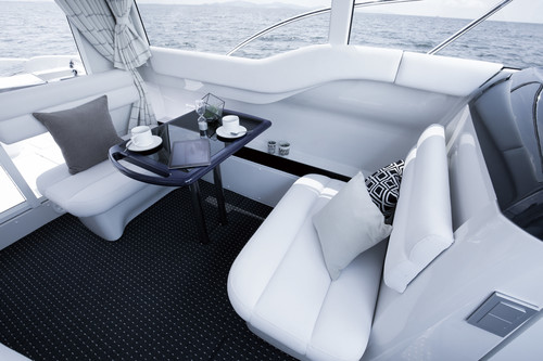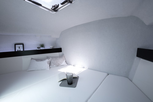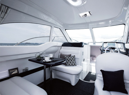 Speciālā vakuuma presē izgatavotais korpuss ir pietiekoši liels, lai iekārtotu tajā gaišu stiklotu kabīni ar kapteiņa vietu, atpūtas telpu ar galdiņu, komfortabliem sēdekļiem un dīvānu, guļamtelpu vairākām personām un vannas istabu ar tualeti.