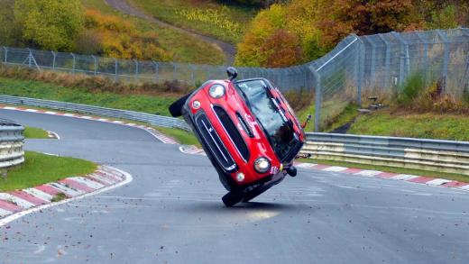 Ķīniešu kaskadieris Hanju Jue ar "Mini" hečbeku nobraucis 20 km garo Nirburgringas (Vācija) sacīkšu trasi, balansējot uz diviem riteņiem.