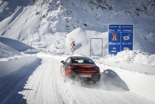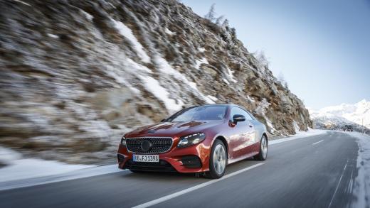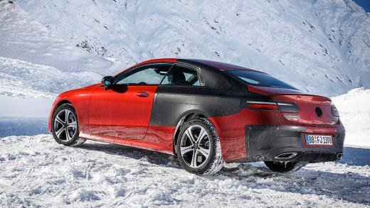 Reizē ar E-klases All Terrain universālu, Alpu kalnos žurnālistiem radīta iespēja izmēģināt arī jauno E-klases divdurvju kupeju, kas būs pieejama arī jaudīgājā “AMG” versijā ar pilnpiedziņu.