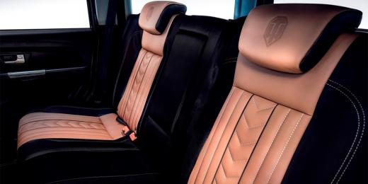 "WoT" simbolika redzama vairākās vietās salonā, tostarp uz sēdekļu galvas atbalstiem un ieslēdzot multimediju sistēmas ekrānu.