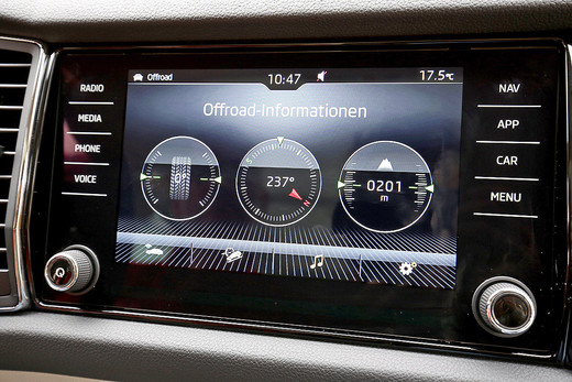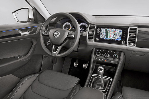 "Kodiaq Scout" ir alkantara salona apdare, multimediju sistēma ar 9,2 collu ekrānu, sistēma, kas palīdz braukt slīpumos un DCC adaptīvie amortizatori.