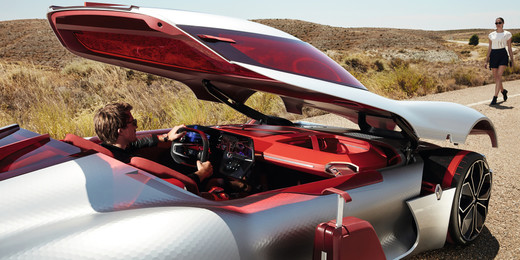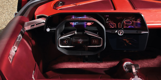 Auto interjera dizains uzsver braukšanas baudu un piedāvā lielu, visaptverošu skārienjūtīgu displeju pastiprinot kokpita sajūtas. Pielāgojamais interfeiss apvieno gan koka, gan ādas materiālus, kas kļūs par iedvesmas avotu turpmākajiem Renault modeļiem izmantojot izsmalcināta stila tendences un viedās tehnoloģijas.