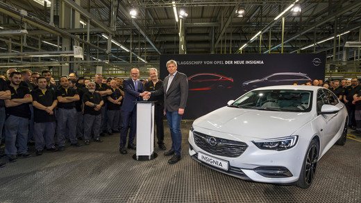 "Opel" galvenajā rūpnīcā Vācijas pilsētā Riselsheimā vakar no konveijera nobraucis pirmais jaunās paaudzes "Grand Sport" sedans.