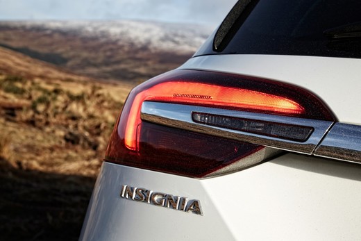 Jaunās Insignia Country Tourer priekšpuse izskatās vēl mērķtiecīgāk nekā tās Sports Tourer radiniekam. Ievērojamā priekšējā reste un slaidie lukturi rada plašāku iespaidu garenvirzienā, savukārt sudraba krāsas aizsargplāksne vizuāli “pavelk” automašīnu uz leju, lai uzsvērtu stabilo stāju. Melnais aizsargapšuvums bamperu apakšā, ap riteņu arkām un visapkārt pa virsbūves apakšu, pastiprina robusto izskatu. Tāpat kā priekšpuse, arī aizmugure demonstrē drosmīgas nianses, piemēram, sudraba krāsas aizsargplāksne un dubultie izplūdes sistēmas izvadi, kas pastiprina zemāku un platāku iespaidu.