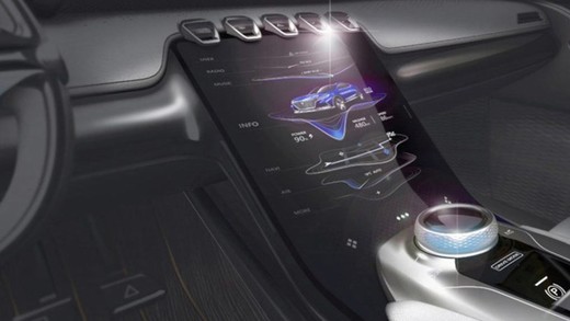 Konceptam Vision-E ir četrvietīgs salons ar sēdekļiem, kurus atdala augsts centrālais tunelis ar priekšpusē slīpi novietotu liela izmēra skārienjutīgu ekrānu. Planšetdatoram līdzīgais ekrāns tiek izmantots dažādu automobiļa funkciju aktivizēšanai, navigācijas un multimediju iekārtu pārvaldīšanai. Interjers izceļas ar neparastas formas stūri un galvas atbalstiem, līdzenu grīdu, izgaismotām sliekšņu uzlikām un salona detaļām.