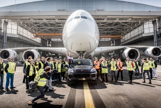 Porsche Cayenne apvidus auto uzstādījis Ginesa rekordu, aizvelkot 285 tonnas smago Airbus A380 lidmašīnu 42 metrus.