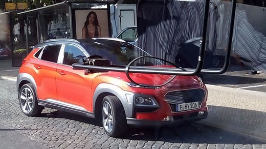 Auto jaunumiem veltītie interneta izdevumi publicējuši "Hyundai" jaunā krosovera "Kona" attēlus, kas iegūti Portugālē, reklāmas materiāla sagatavošanas laikā.