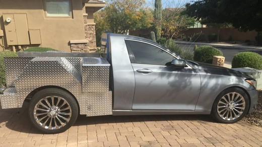 Automobiļu tirdzniecības portālā "Craigslist" ievietots sludinājums, kurā kāds amerikānis piedāvā 2015.gada "Hyundai Genesis", kas pārbūvēts par pikapu. Automašīnas cena – 16 500 dolāru.