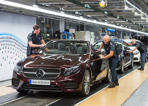 Mercedes-Benz rūpnīcā,Vācijas pilsētā Brēmenē, no konveijera noripojis pirmais jaunās paaudzes E-klases kabriolets, kas Eiropas dīleru centros gaidāms šīs vasaras beigās.