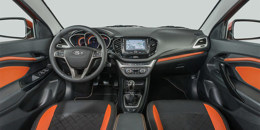Lada Vesta SW salons līdzinās konceptam Vesta SE Cross un izceļas ar oranžas krāsas akcentiem, kas izmantoti durvju, sēdekļu un priekšējā paneļa apdarei, pieskaņojoties mērinstrumentu skalu oranžajam sagrafējumam.