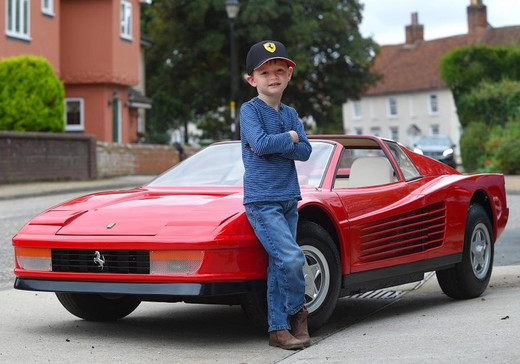 Lielbritānijā pārdošanā izlikts pasaulē dārgākais bērnu automobilis – samazināta izmēra Ferrari Testarossa kopija, ko tagadējais īpašnieks pārdod par 75 000 mārciņu (97 000 ASV dolāru).